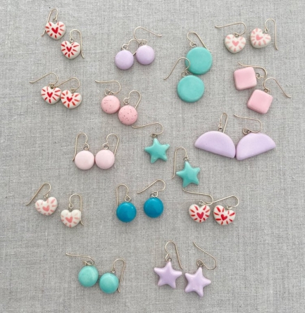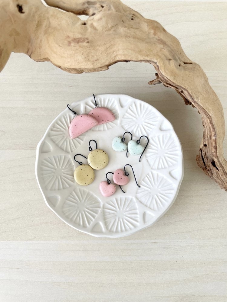 Each workshop participant will get materials and supplies to make 3 pairs of earrings and 1 ceramic pendant. Casey will fire your pieces and add 14k gold filled hooks to your earrings and a gold filled jump ring to your pendant so you can add it to a chain of your choice. Necklace chains are not included but can be purchased for an additional $30.