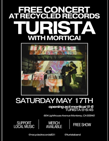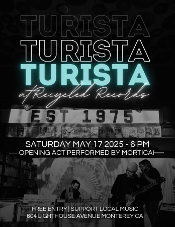 Recycled Records hosts a free performance by Turista and opener Morticai on Saturday, May 17 at 6pm. Join us for instrumental alternative rock with a touch of psychedelic and shoegaze.