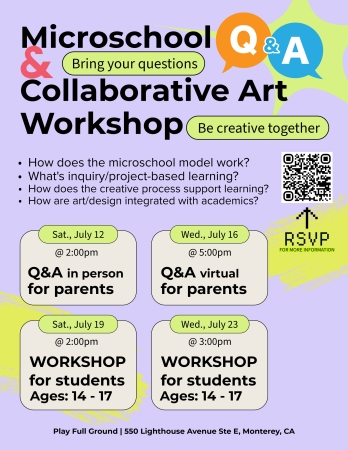 The goal is to encourage self-reflection through artistic practices, foster ideation and brainstorming within a group setting, and realize creative ideas through hands-on activities. It will also provide a glimpse into the innovative learning environment at the Play Full Ground Micro High School opening in Fall 2025, where creativity and collaboration are at the heart of students' learning.