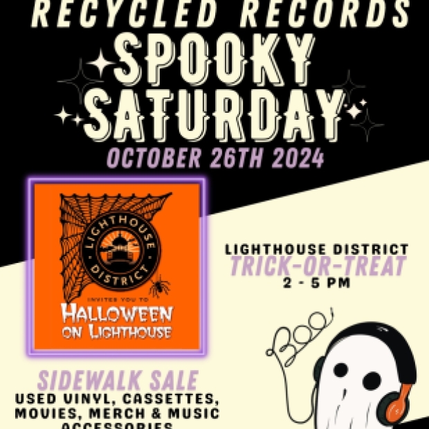 Recycled Records is holding a Spooky Saturday Sidewalk Sale on October 26, 11am-5pm. Stop by for great deals on used vinyl, cassettes, movies, merchandise, and music accessories!